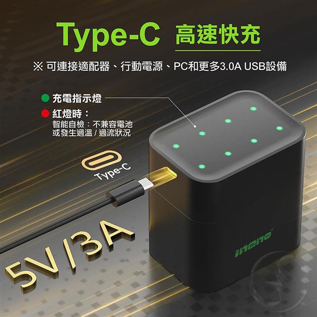 【ineno】整合式 智能隨身收納盒充電器(8槽) 1.5V鋰電池 3號/AA,4號/AAA
