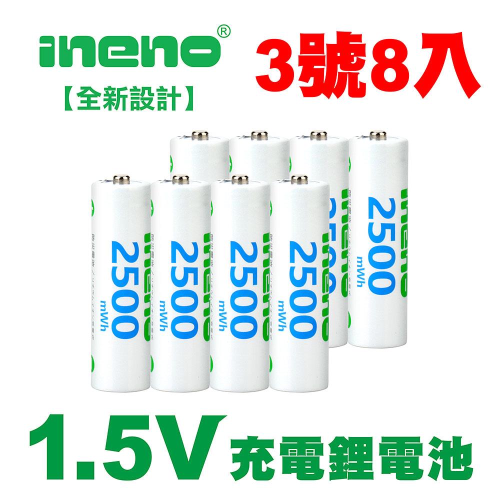 【iNeno】3號/AA 恆壓可充式 1.5V鋰電池 全新設計 2500mWh 8入