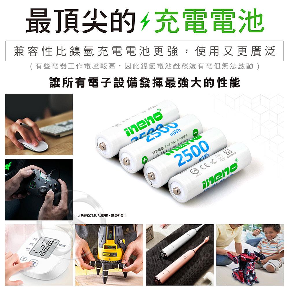 【ineno】3號/AA恆壓可充式1.5V鋰電池: