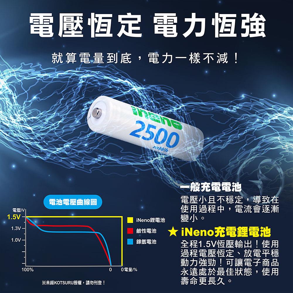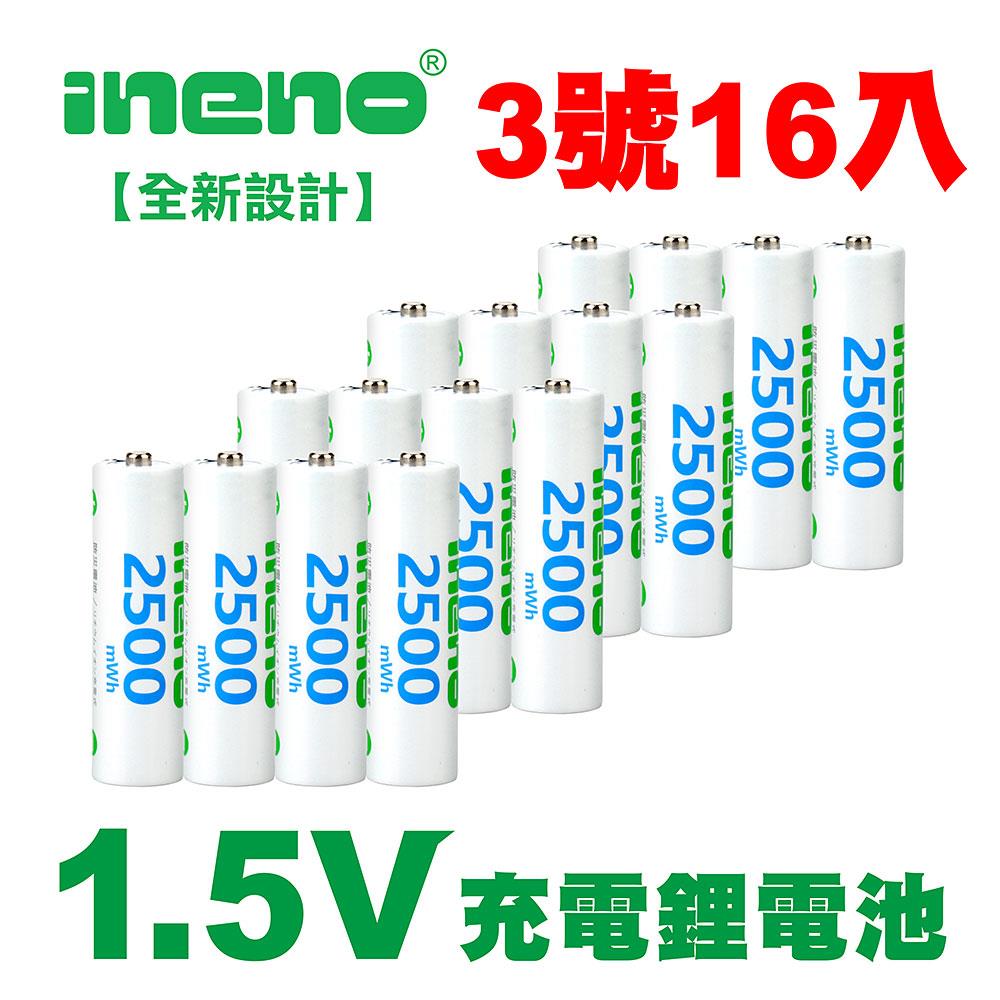 【iNeno】3號/AA 恆壓可充式 1.5V鋰電池 全新設計 2500mWh 16入
