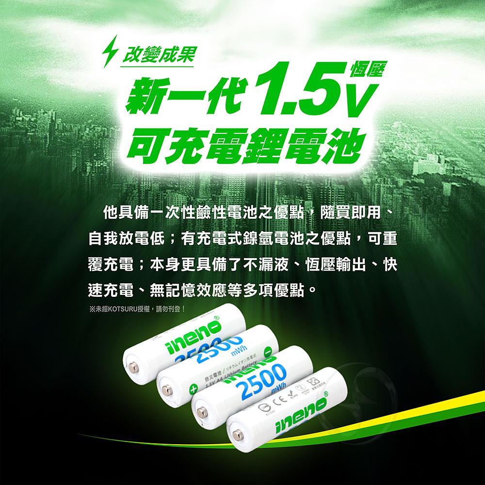 【ineno】3號/AA恆壓可充式1.5V鋰電池: