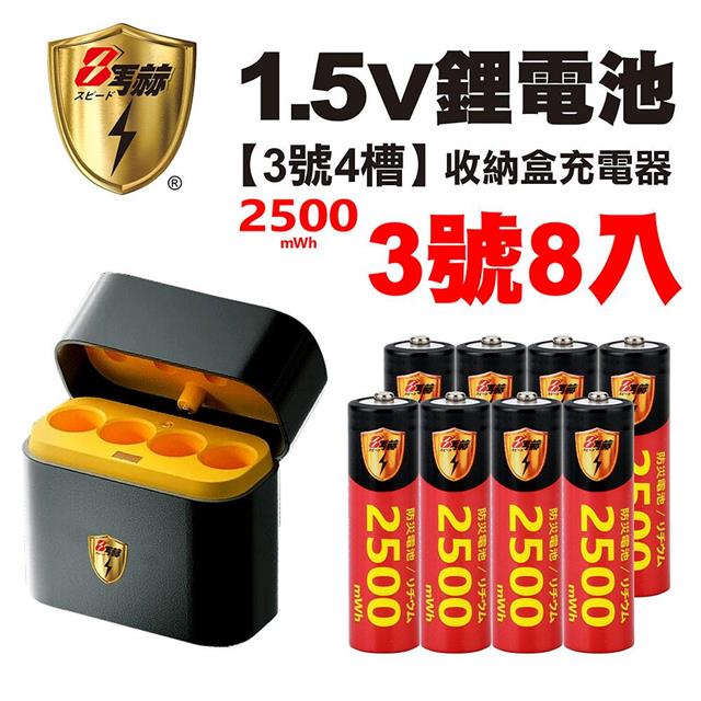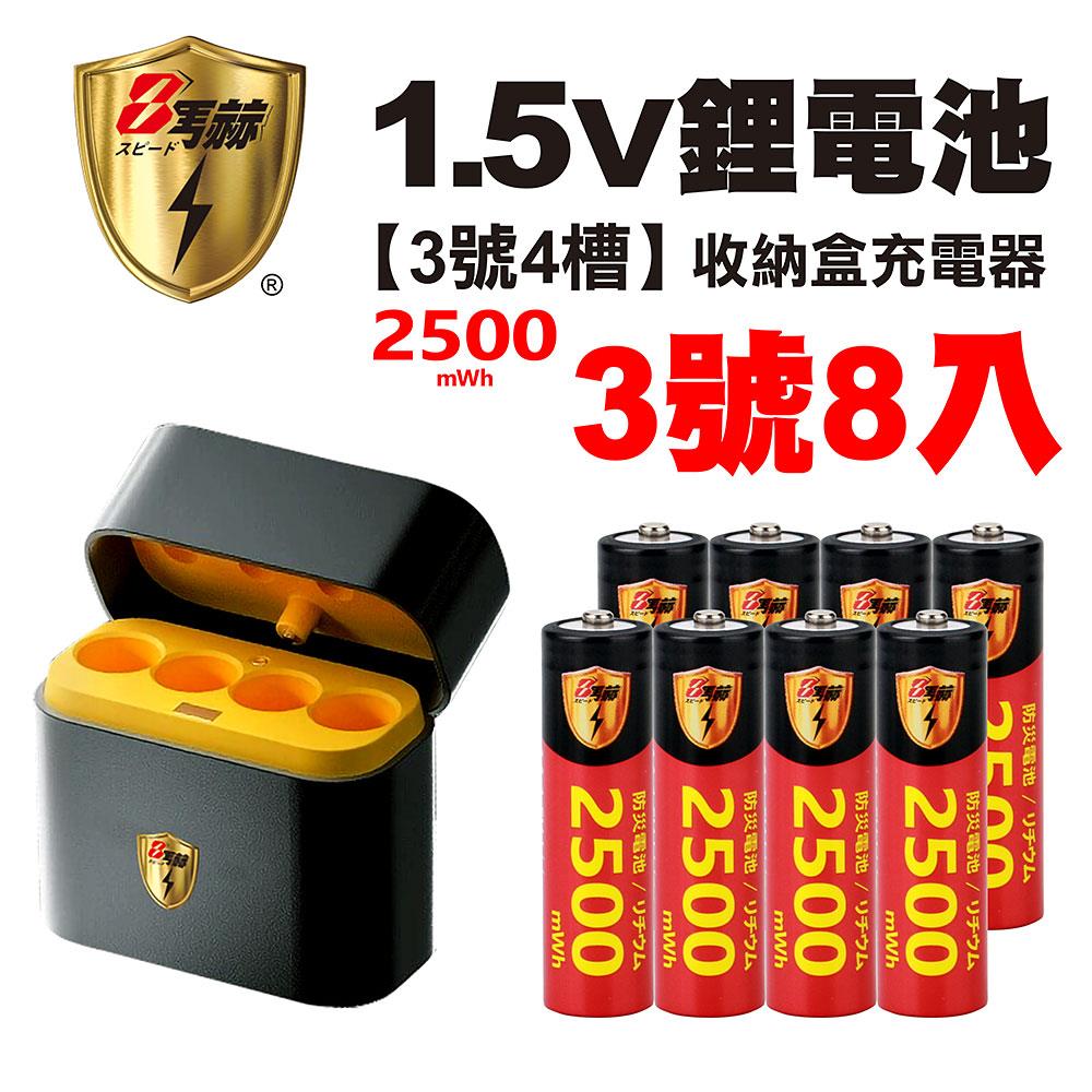 【8馬赫】3號/AA 恆壓可充式1.5V鋰電池全新特大能量2500mWh8入+(3號4槽)AI隨身收納盒充電器