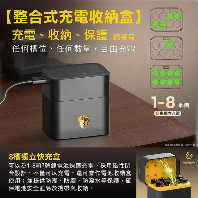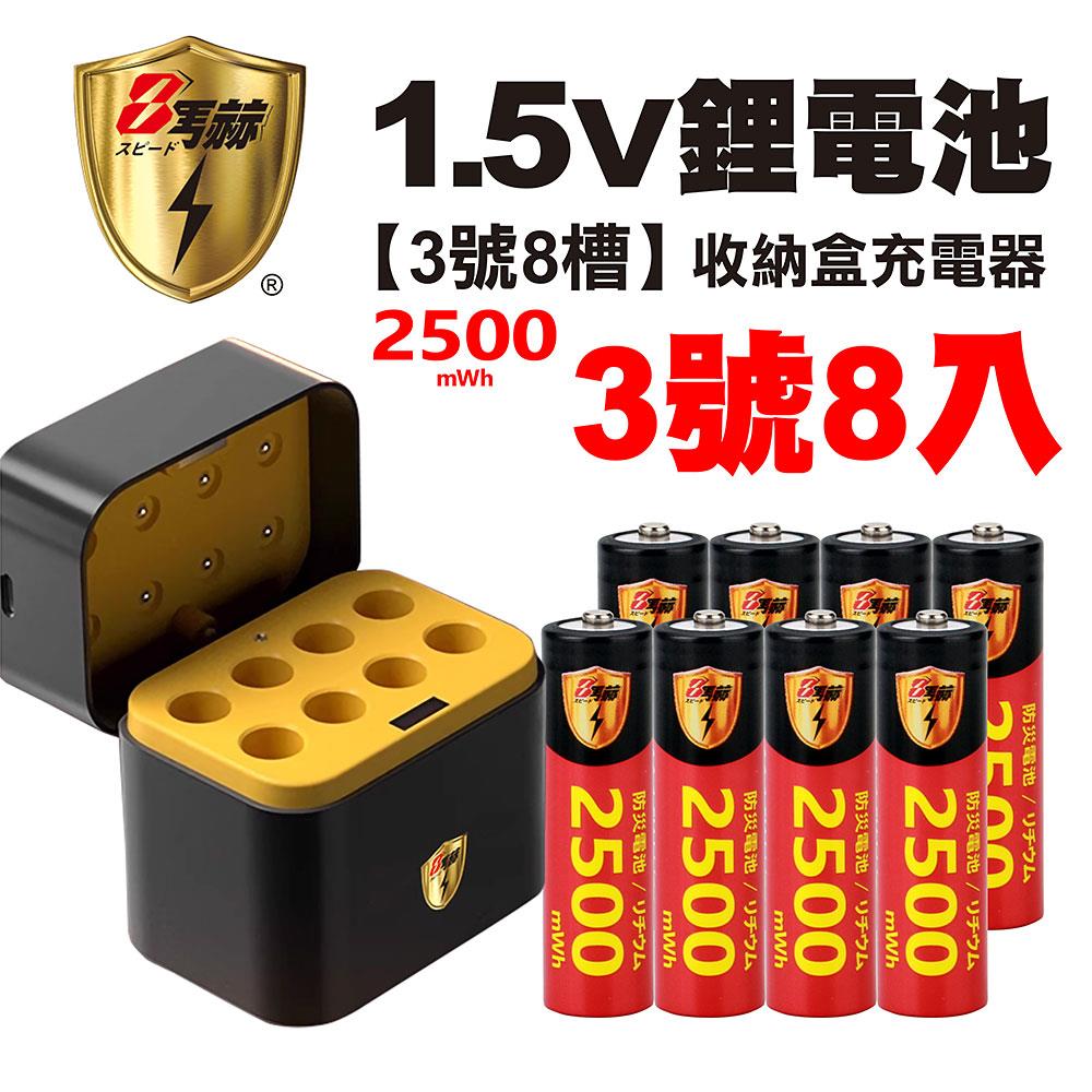 【8馬赫】3號/AA 恆壓可充式1.5V鋰電池全新特大能量2500mWh8入+(3號8槽)AI隨身收納盒充電器