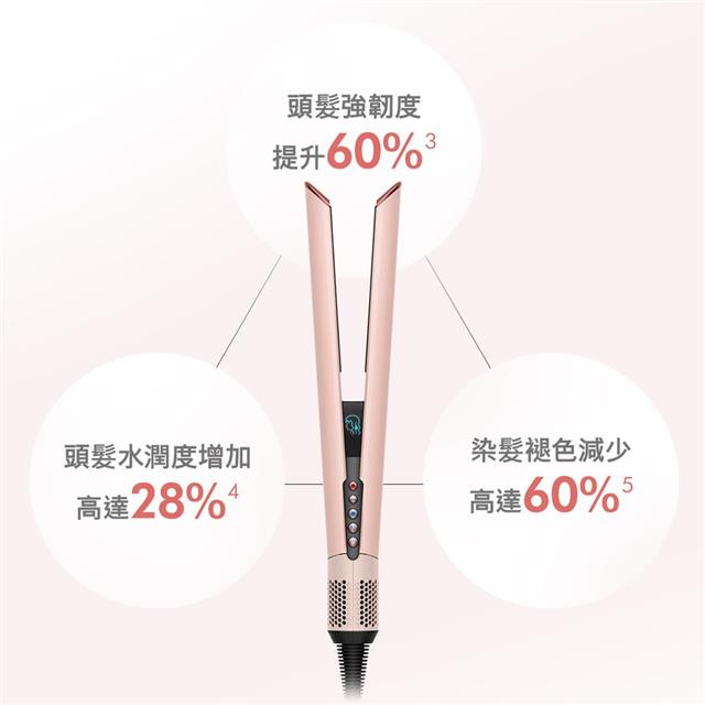 3. 乾濕兩用省時省心:不依賴加熱面板,無熱傷害: 傳統加熱式直髮器,利用高溫造型易造成頭髮斷裂乾枯。Dyson二合一吹風直髮器,提升髮絲強韌度60% / 水潤度28%/ 染髮退色60%