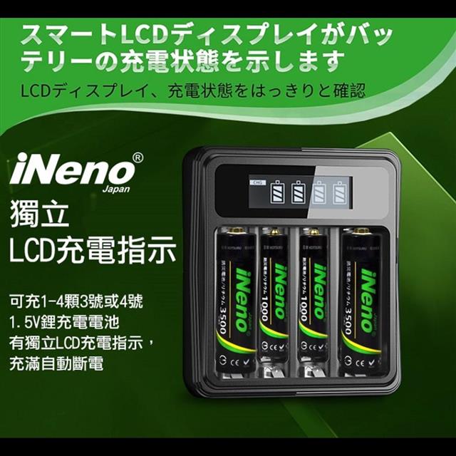 【ineno】3號/AA 恆壓可充式1.5V鋰電池全新特大能量3700mWh16入+(3號/4號通用)液晶鋰充電器