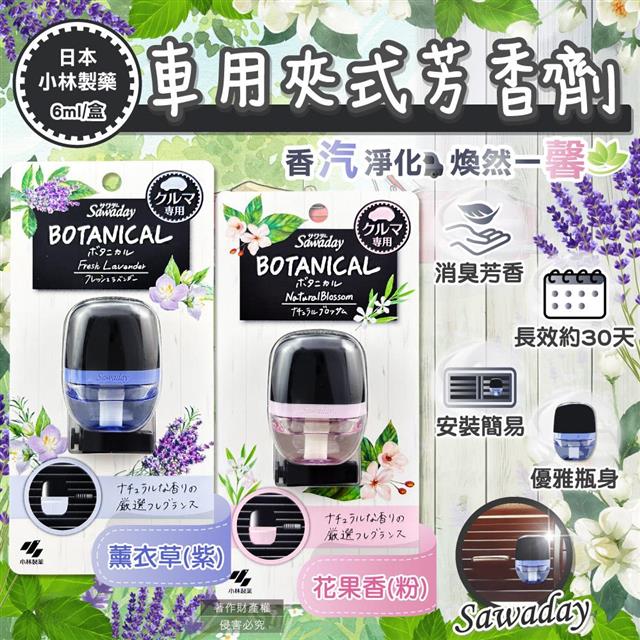 日本小林製藥-Sawaday BOTANICAL車用空調出風口專用夾式芳香劑6ml/盒(汽車清新擴香器/卡扣式車載香氛/除臭味皮革食物異味/長效馨香約30天)