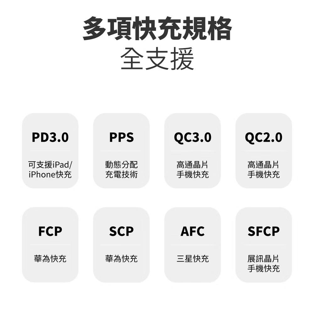 支援各項快充協議 ⇨ 通用大部分的手機及設備