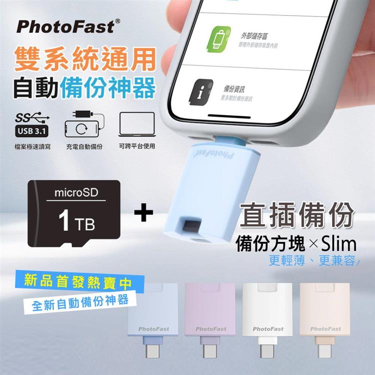 【Photofast】PhotoCube 二代直插式 雙系統手機備份方塊Slim(iOS蘋果/安卓通用版)+1TB記憶卡