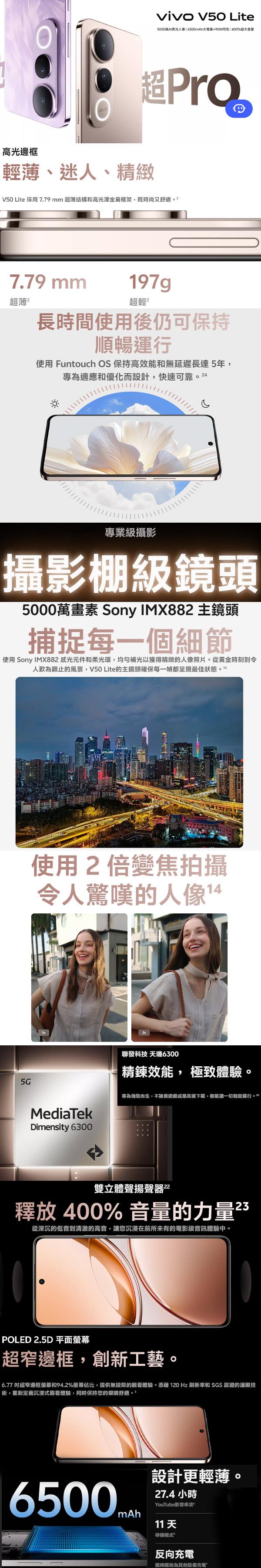 vivo V50 Lite (12G/256G)AI人像柔光雙卡機※送支架+內附保護殼※