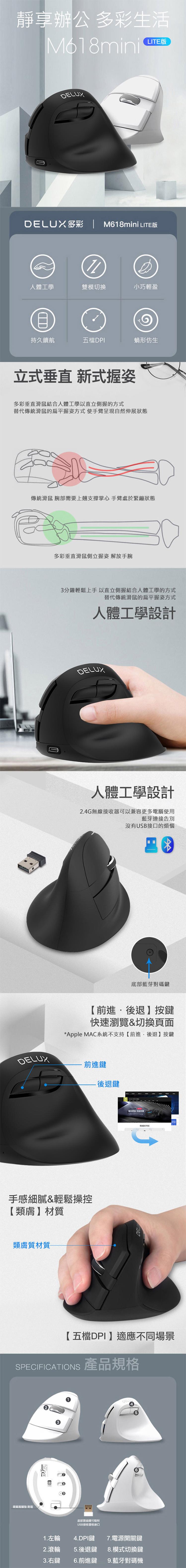 DeLUX M618mini LITE版 雙模垂直靜音光學滑鼠(無RGB呼吸燈)