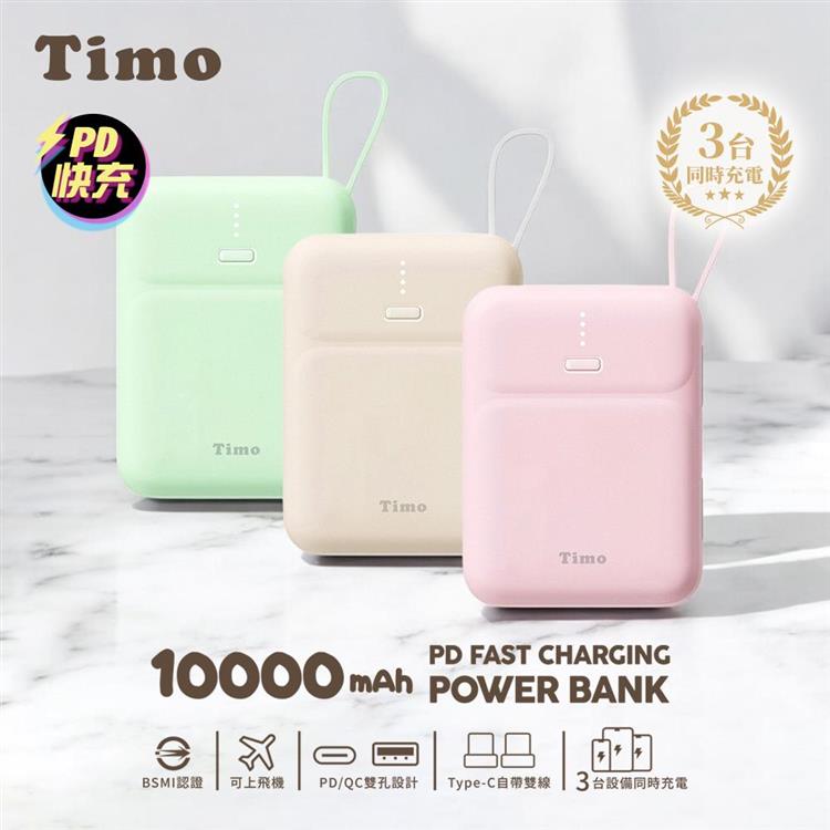 【Timo】PD快充 雙線Q寶行動電源 10000mAh
