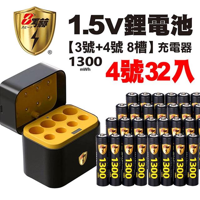 【8馬赫】1.5V鋰電池 1300mWh 4號32入 搭配AI隨身收納盒充電器(3號4號各4槽)