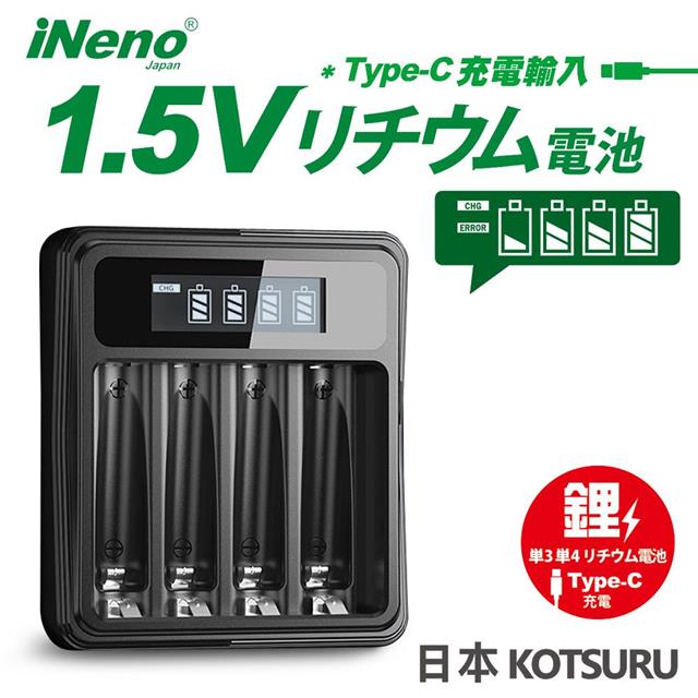 【ineno】1.5V鋰電池1300mWh 4號32入 搭配液晶顯示鋰電池充電器