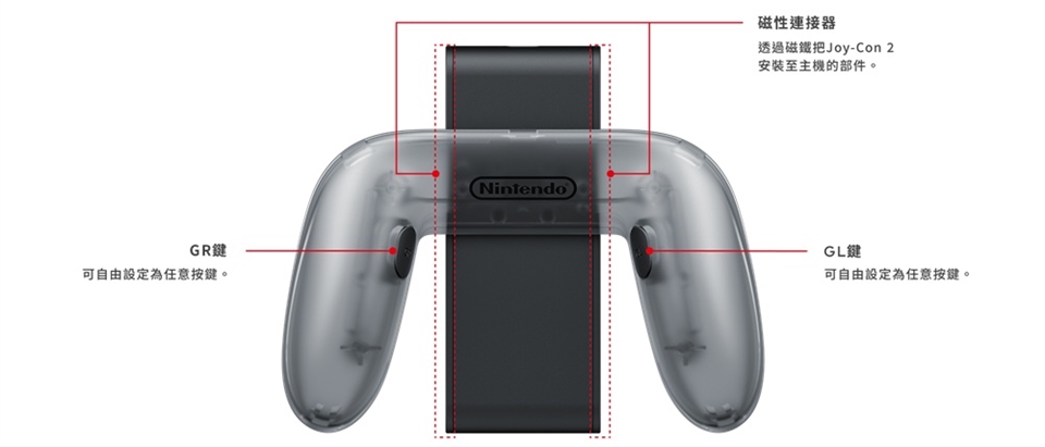 在遊玩途中可對「Joy-Con 2」進行充電,不用擔心電量不足問題。此外,也可以把GL/GR鍵設定成任意按鍵來使用。