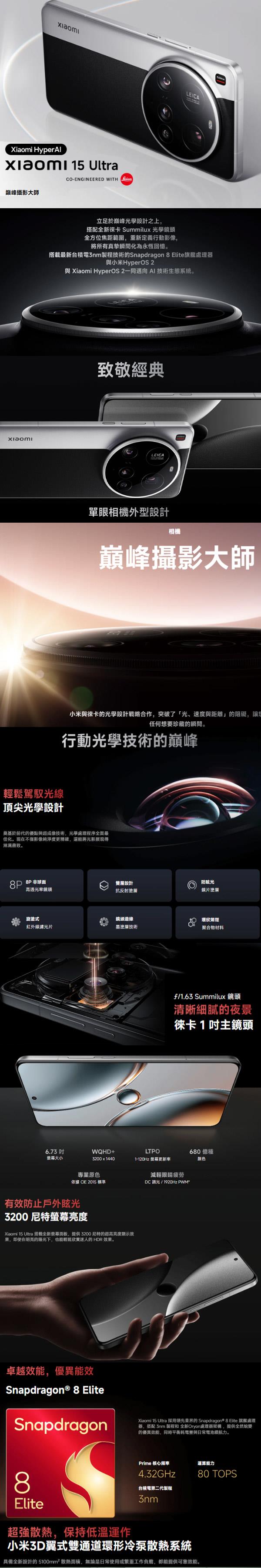 小米 Xiaomi 15 Ultra (16G/512G)巔峰攝影大師※送支架+內附保護殼※