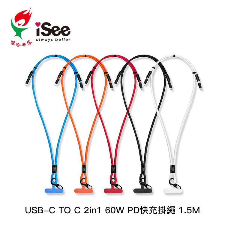 嘻哈部落iSee Type-C to C 60W 可調節多功能快充手機掛繩1.5M(IC-CC236)