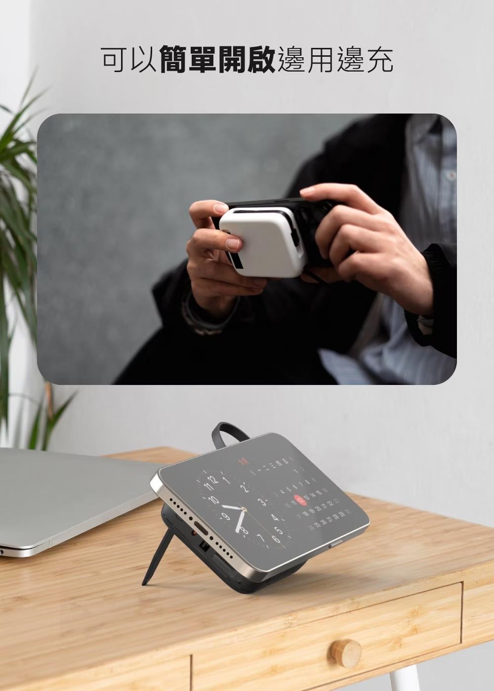此行動電源還帶有「手機支架」,讓你隨時解放雙手追劇、滑社群,適合常外出、多裝置充電需求的使用者。