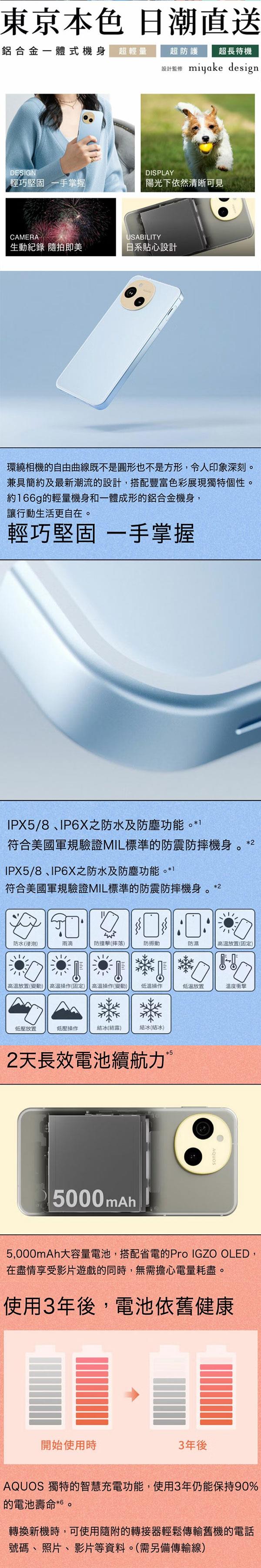 ◎電池容量:5,000 mAh大容量長效電池(固定式);採用USB Type-C規格