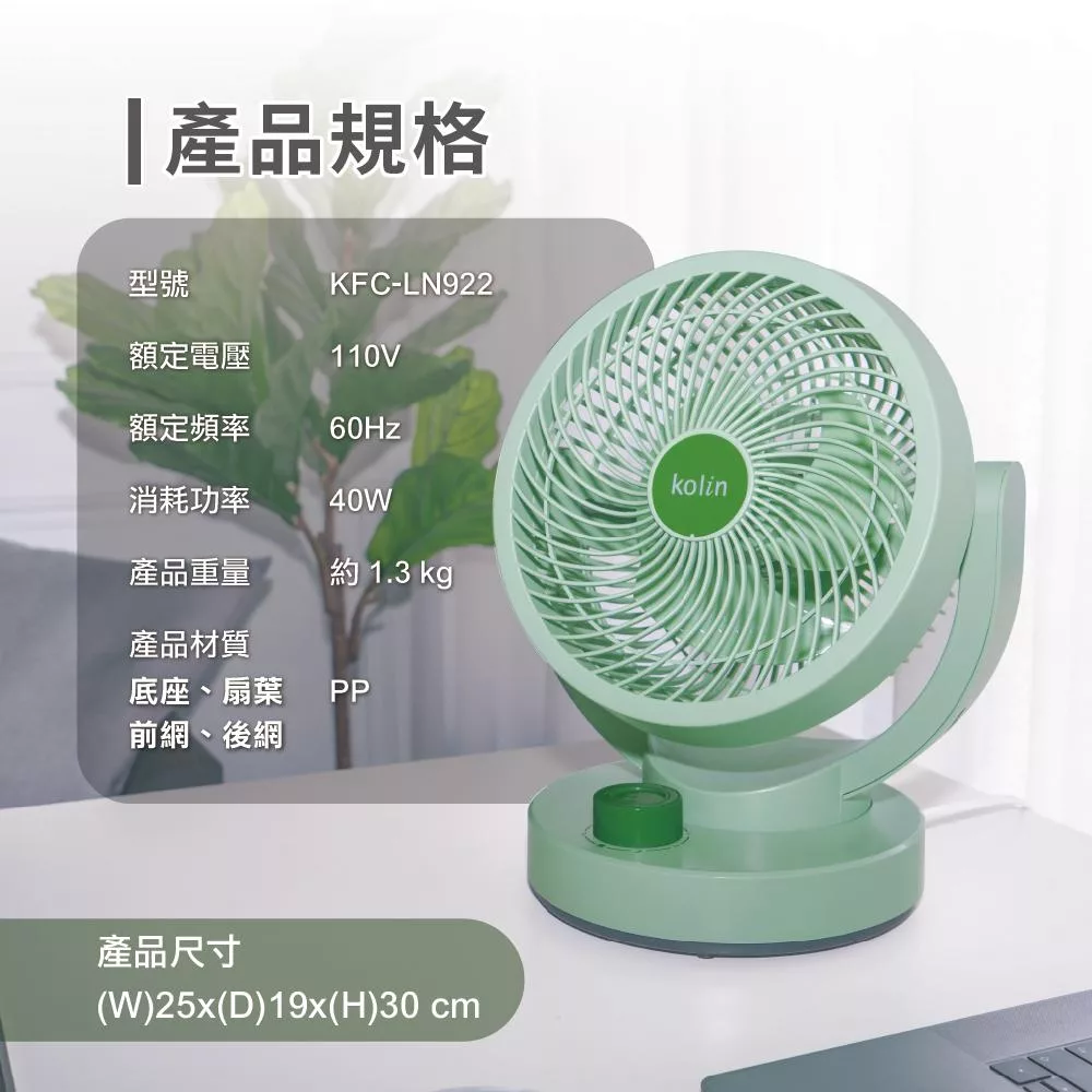 歌林Kolin 9吋擺頭循環扇KFC-LN922 (綠色/輕巧風扇/桌扇)