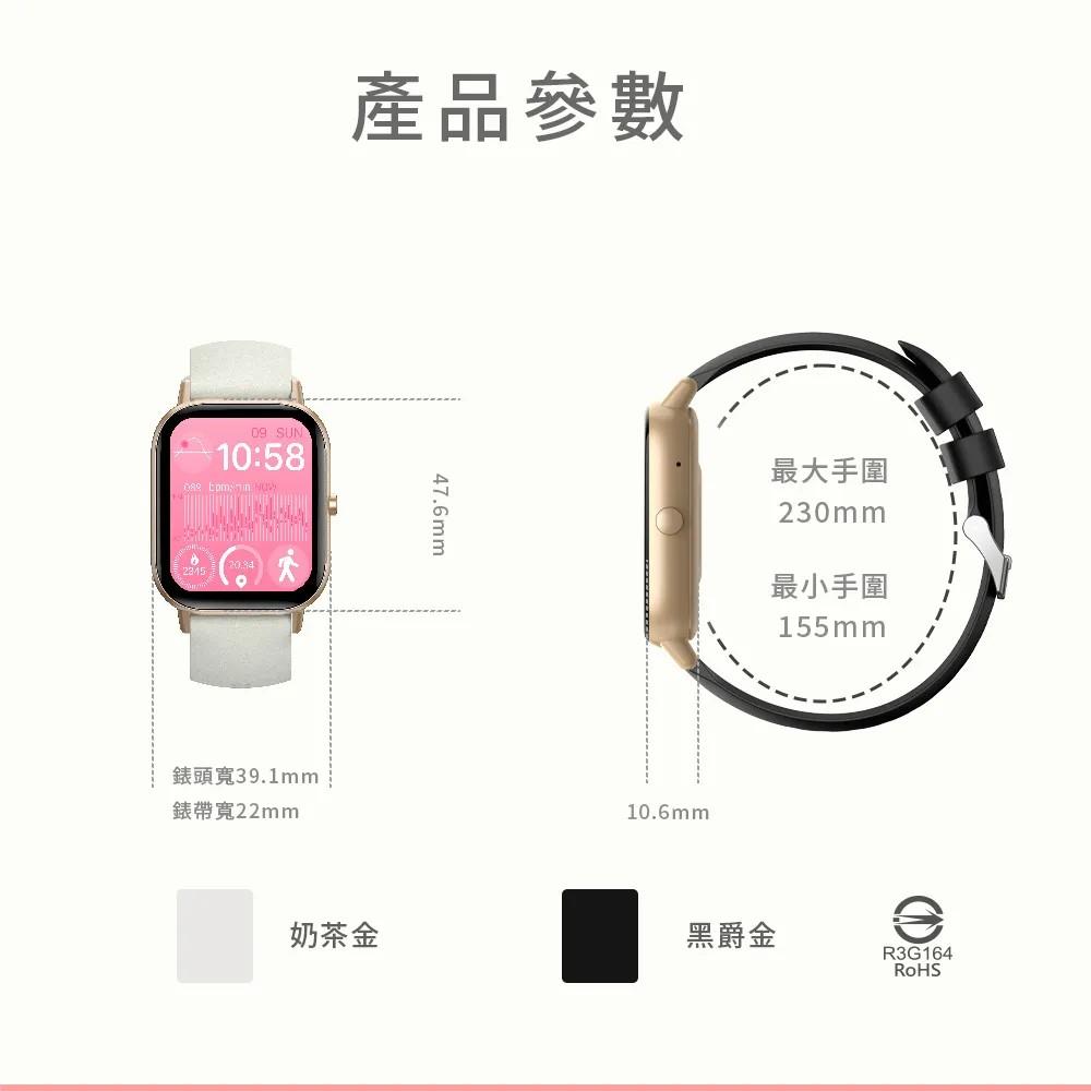 錶帶尺寸/ 手圍範圍 (錶頭47.6*39.1*10.6mm / 錶帶寬 22mm/ 最大手圍 230mm 最小手圍 155mm)