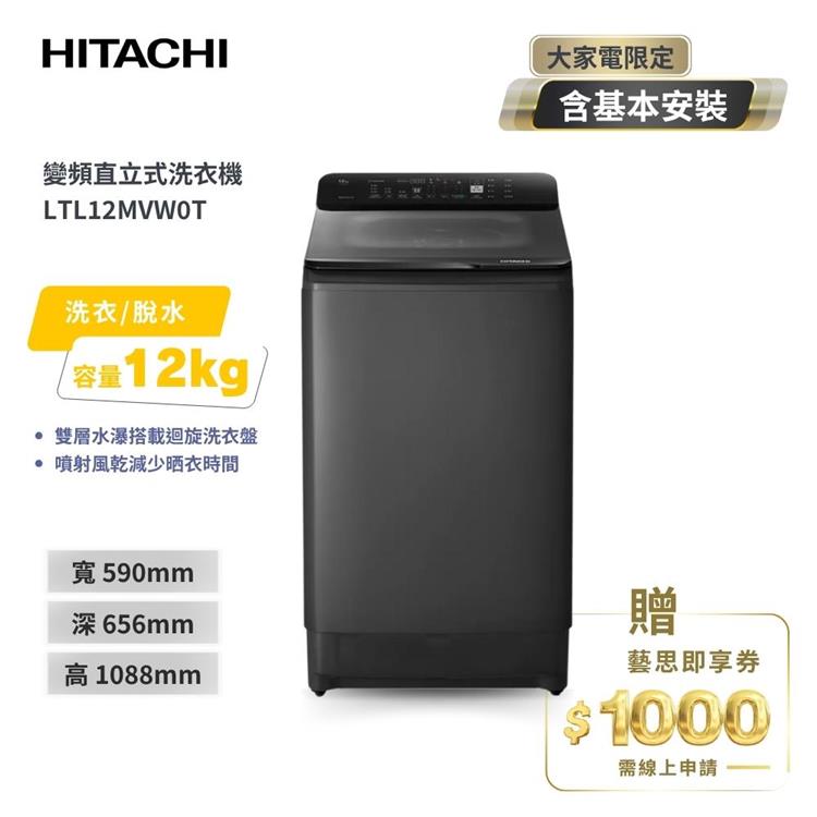 【HITACHI 日立】12(kg) 全能窄版直立式變頻洗衣機 LTL12MVW0T-GG 靜墨灰