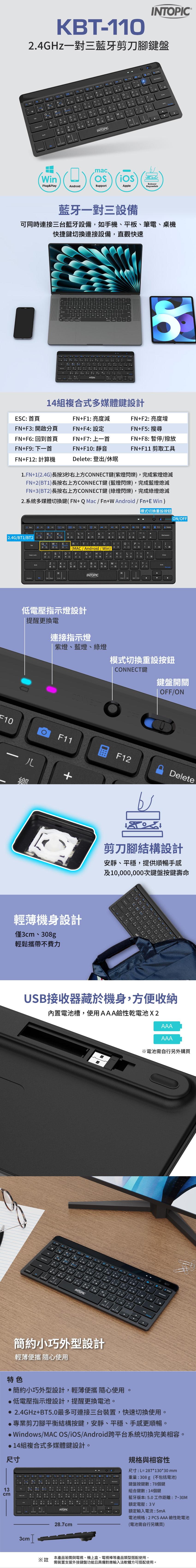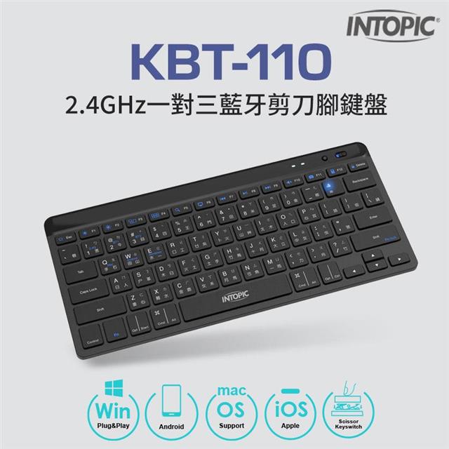 INTOPIC 廣鼎 2.4GHz一對三藍牙剪刀腳鍵盤(KBT-110)