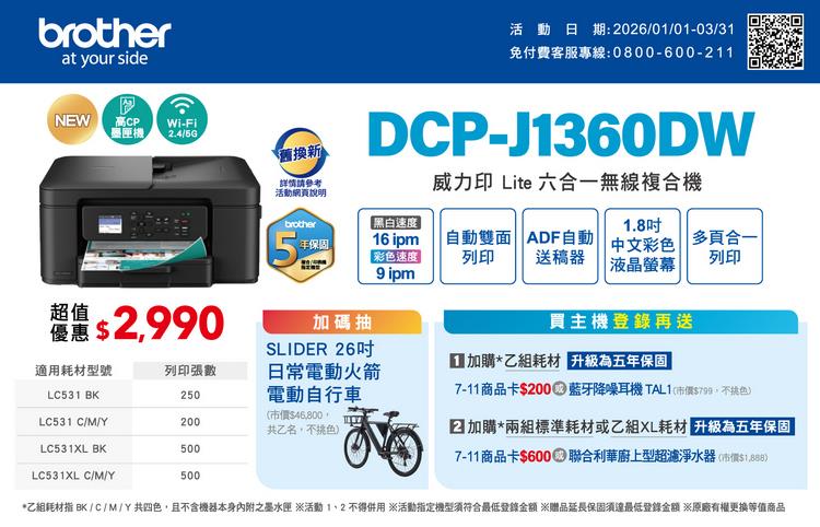 | DCP-J1360DW | NT$ 2,940 |