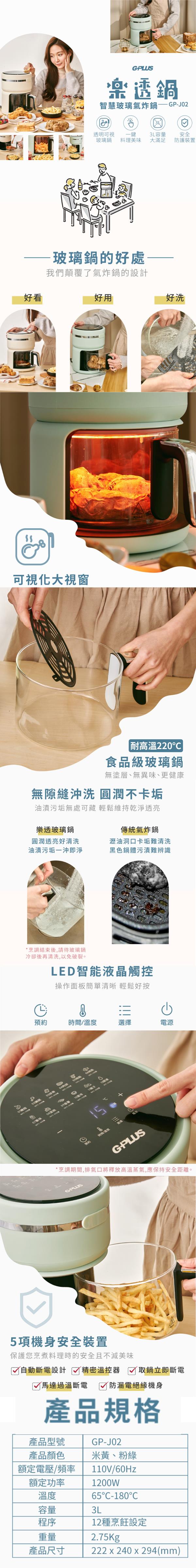 GPLUS GP-J02 智慧玻璃3L氣炸鍋