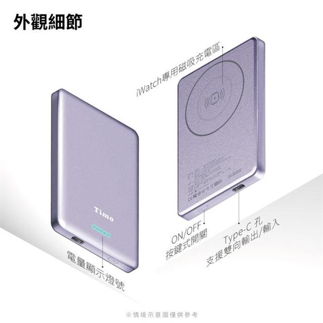 【Timo】鳥羽系列 超薄三合一磁吸無線充行動電源 5000mAh
