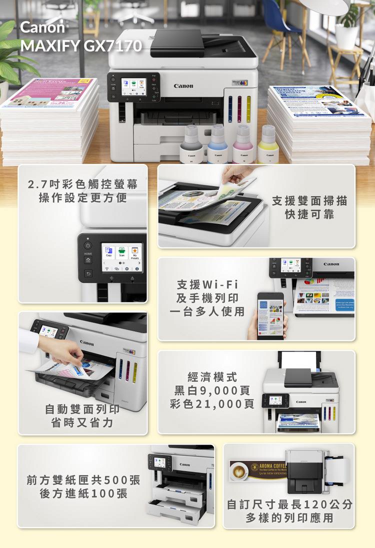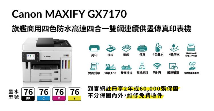Canon MAXIFY GX7170 旗艦商用四色防水高速四合一雙網連續供墨傳真印表機
