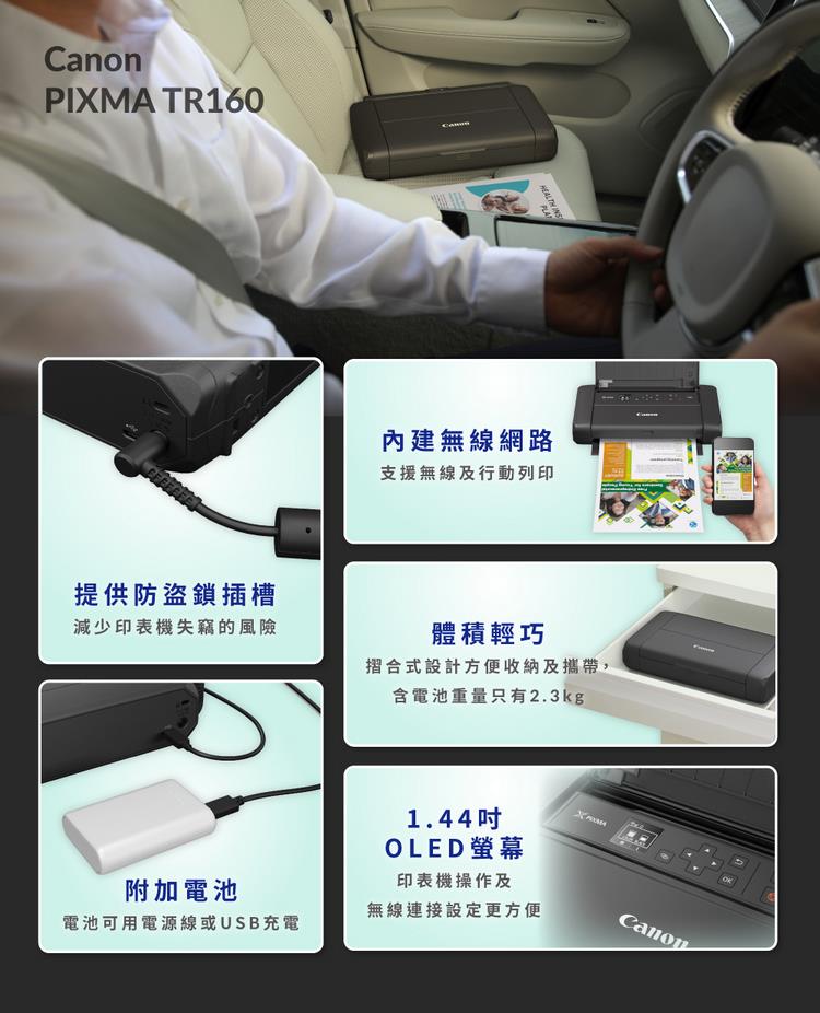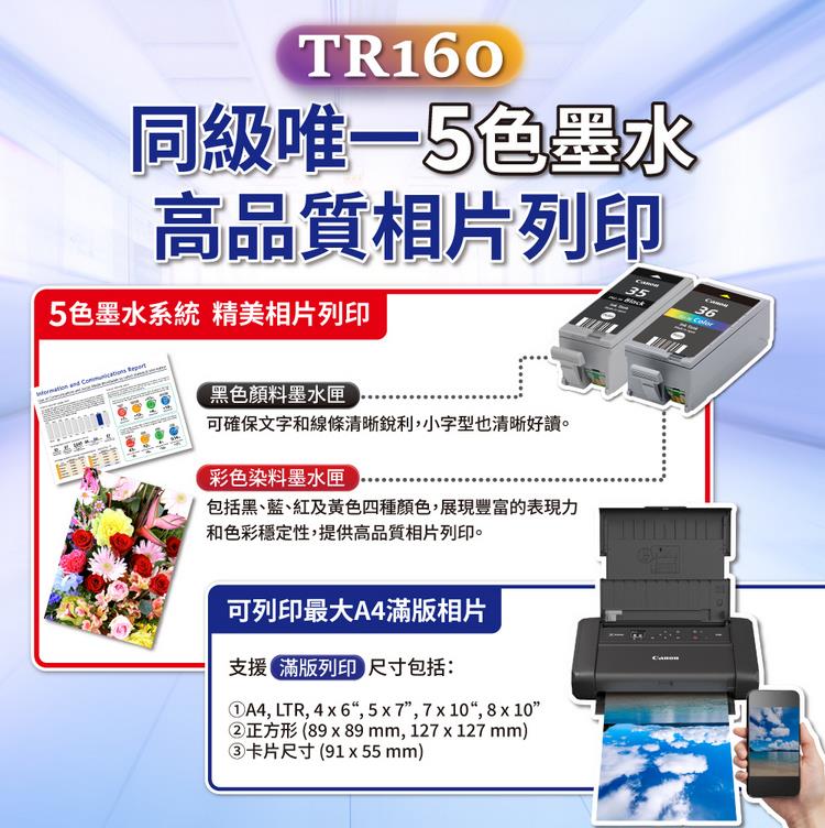 Canon PIXMA TR160 彩色行動相片噴墨印表機+PGI-35+CLI-36墨水組(滿版列印/WiFi/USB充電)