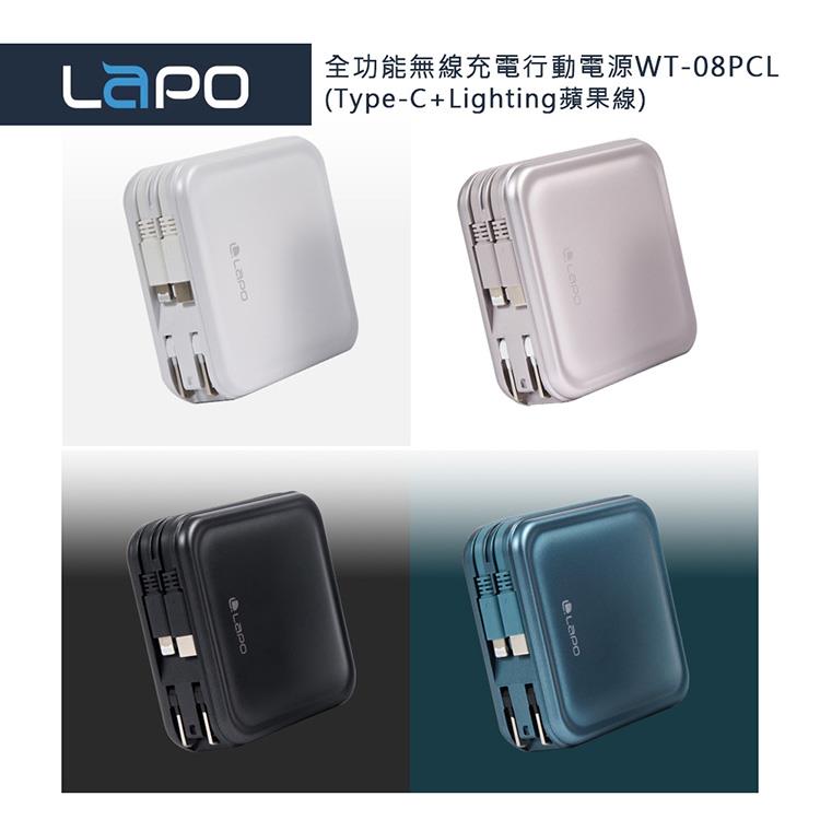 LaPO 全功能無線充電行動電源WT-08PCL(Type-C+Lighting蘋果線)