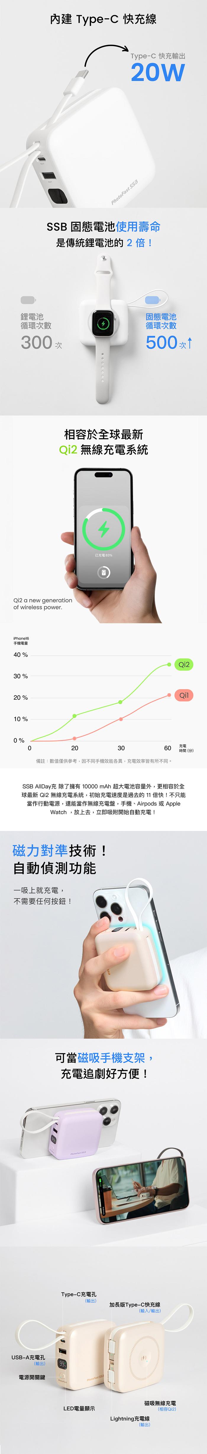 【PhotoFast】SSB mini充 Qi2 多功能磁吸固態行動電源 10000mAh