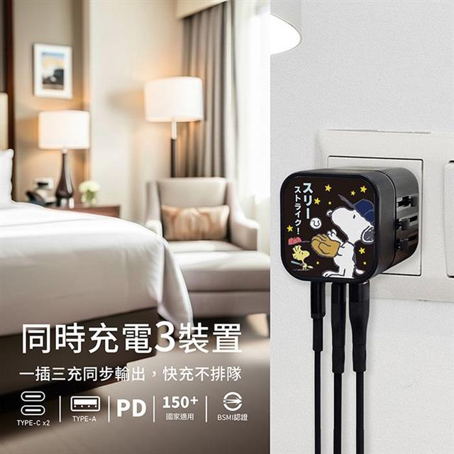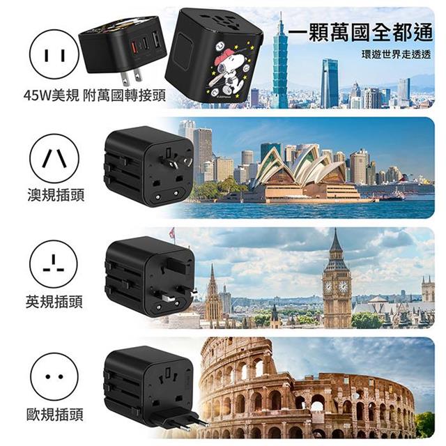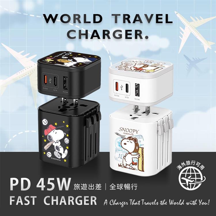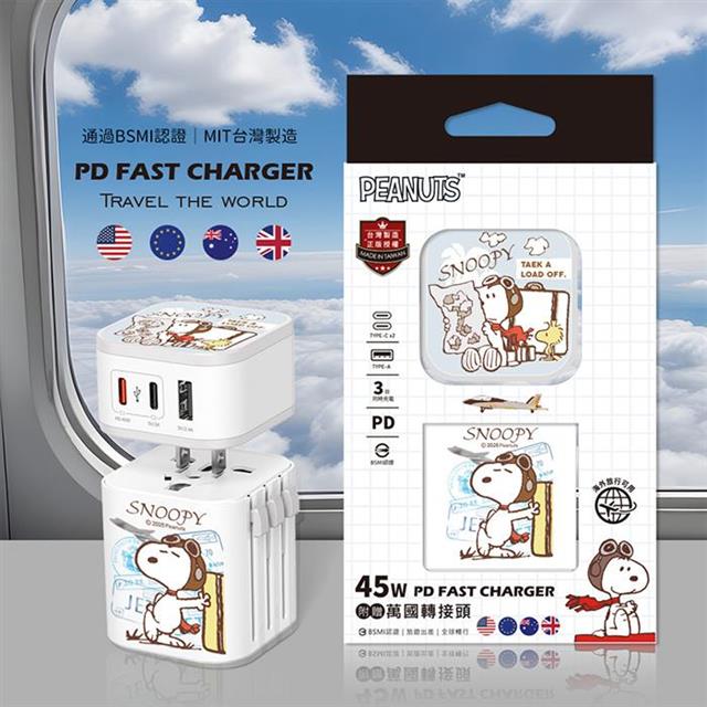 【正版授權】SNOOPY史努比 45W 2C1A 旅行電源供應器 (含萬國轉接頭)