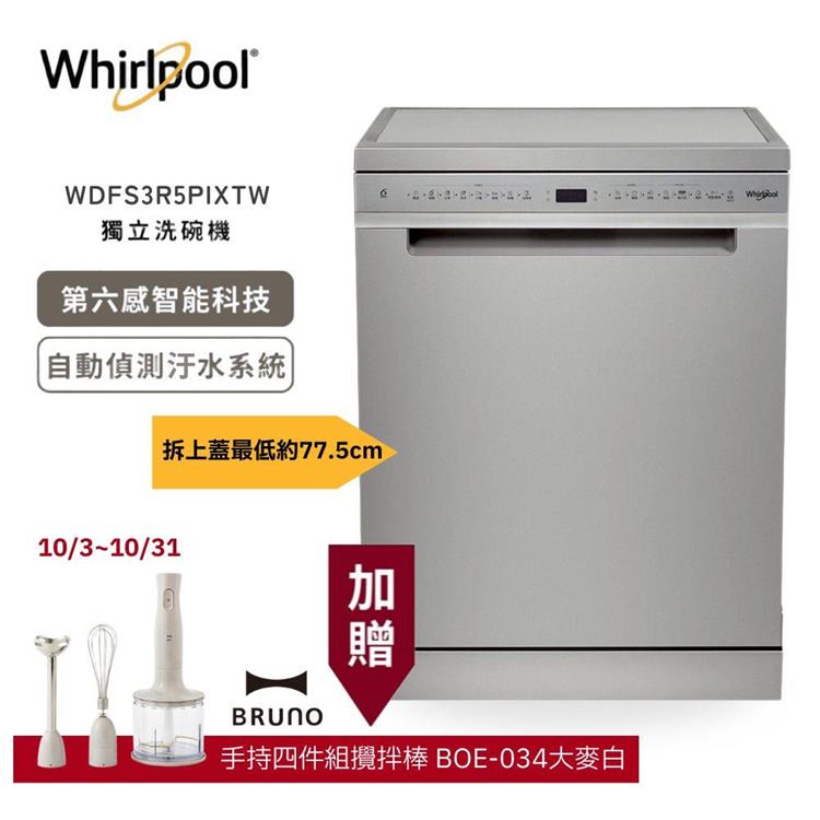【Whirlpool 惠而浦】15人份 110V自動開門烘乾 獨立式洗碗機 WDFS3R5PIXTW