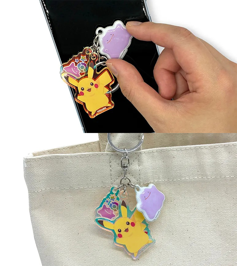 搭配閃亮的皮卡丘與百變怪造型壓克力吊飾,可以掛在包包或錢包上享受可愛造型。
