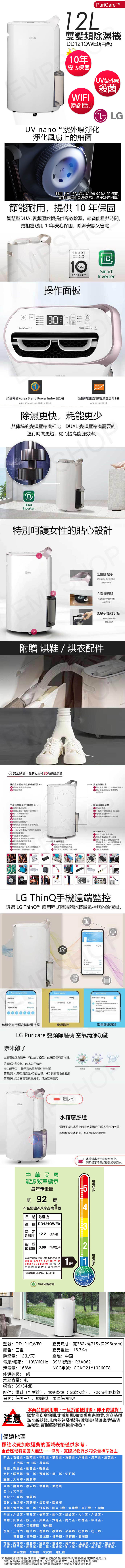 【LG樂金】12公升PuriCare 雙變頻除濕機 DD121QWE0