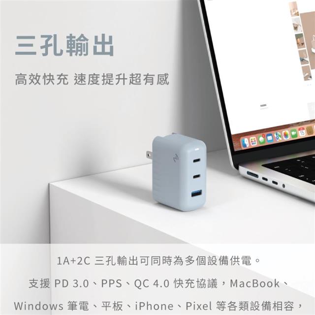 1A+2C三孔輸出,智能分配功率,多設備同時高效供電,單孔最高70W