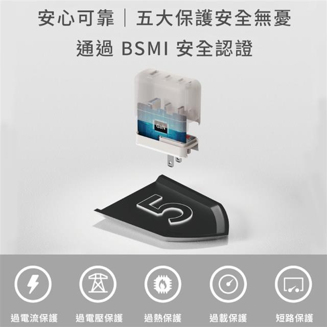●GaN氮化鎵黑科技,快充高穩定散熱佳,BSMI認證,5重斷電安全防護!