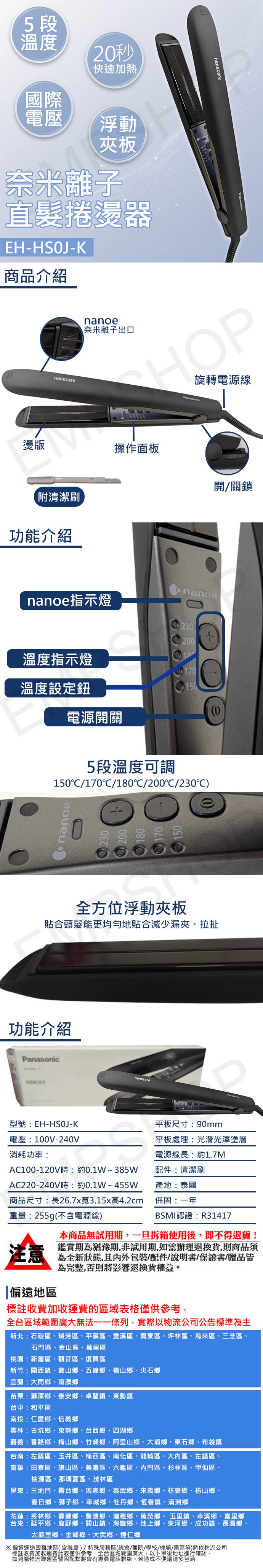 【國際牌Panasonic】奈米離子直髮捲燙器 EH-HS0J-K