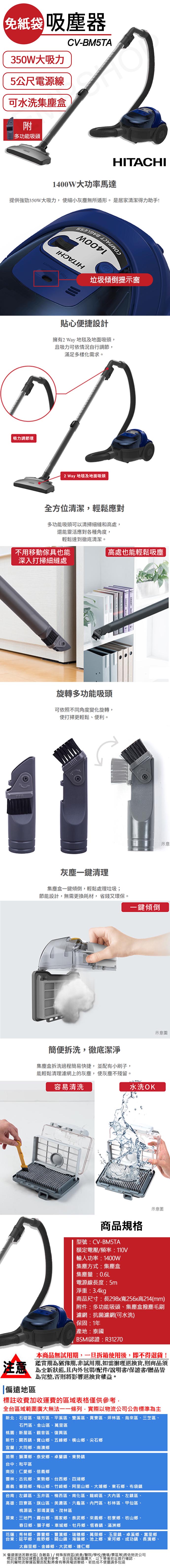 【日立HITACHI】免紙袋集塵式吸塵器 CV-BM5TA / CVBM5TA