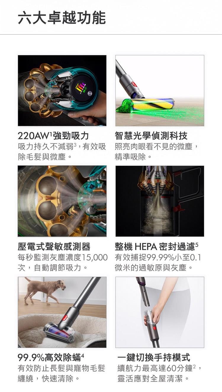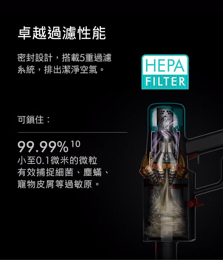 60分鐘吸力 HEPA濾網升級/可更換電池/全新升級配件/全新升級智慧感測系統