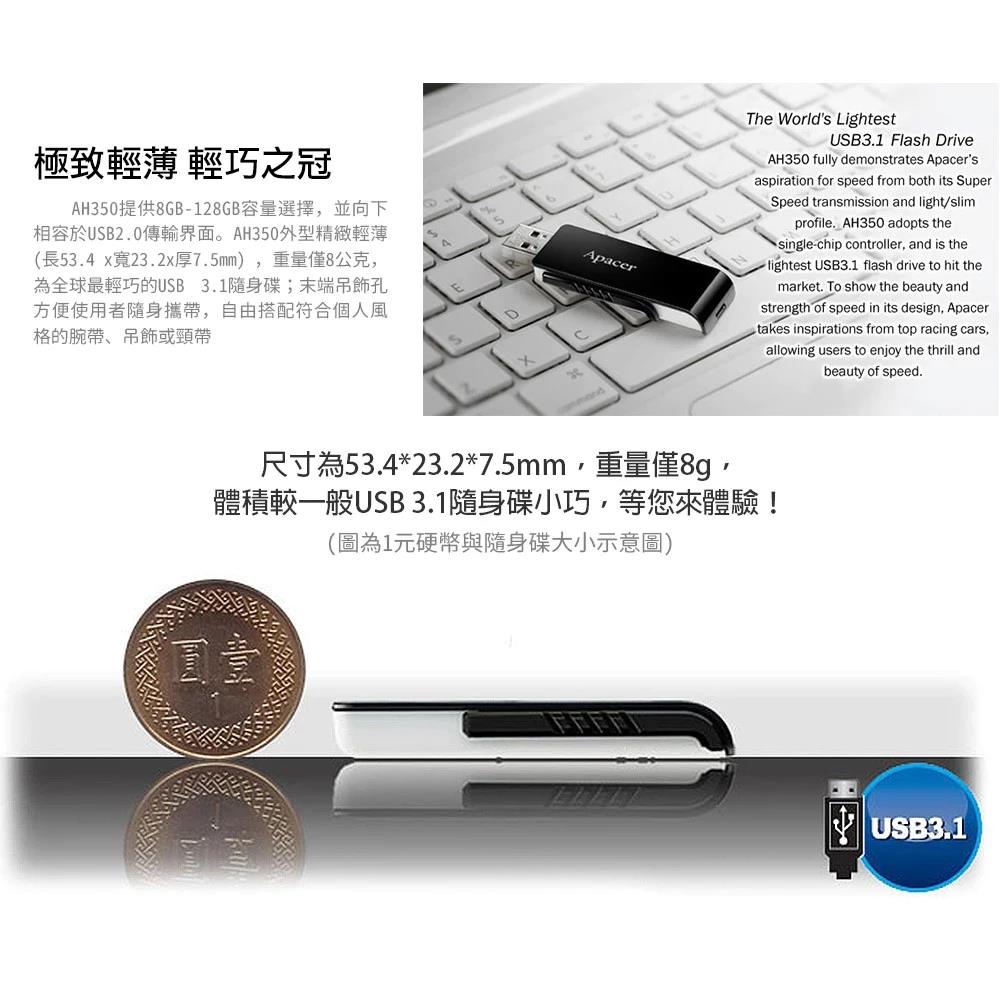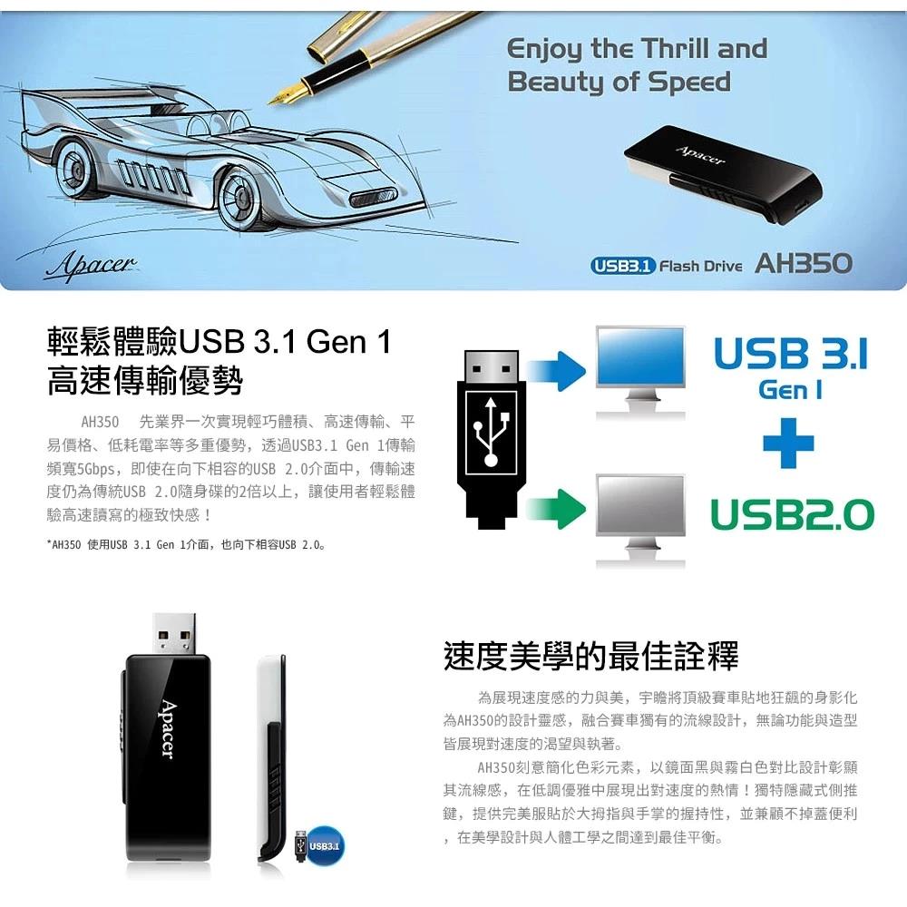 Apacer 宇瞻 AH350 32GB 賽車碟 USB3.1 隨身碟(二入特惠組)