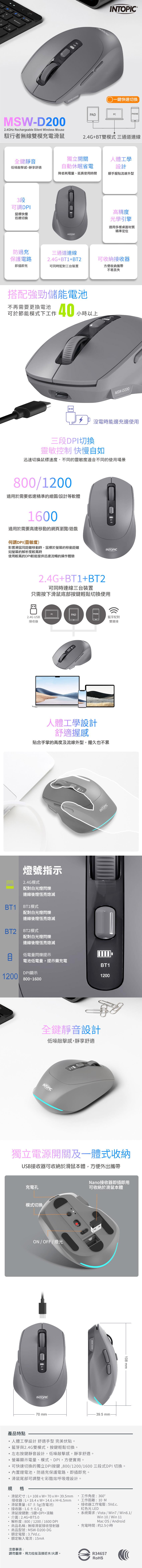 INTOPIC 廣鼎 馭行者無線雙模充電滑鼠(MSW-D200)