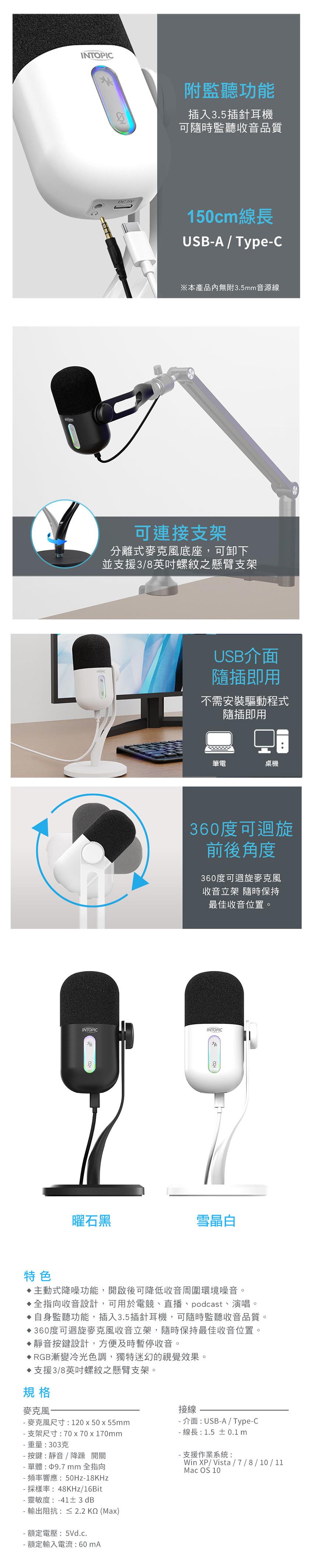 INTOPIC 廣鼎 ENC降噪直播麥克風(JAZZ-UB036)
