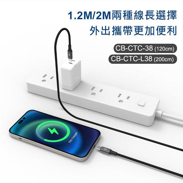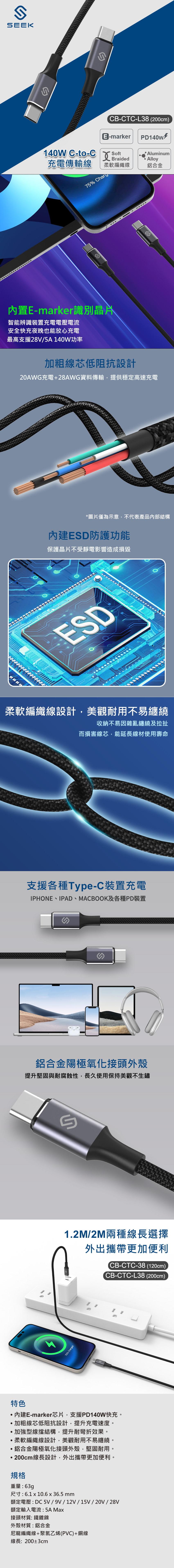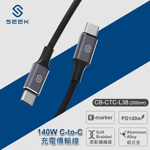 SEEK 140W C-to-C充電傳輸線200cm(CB-CTC-L38)