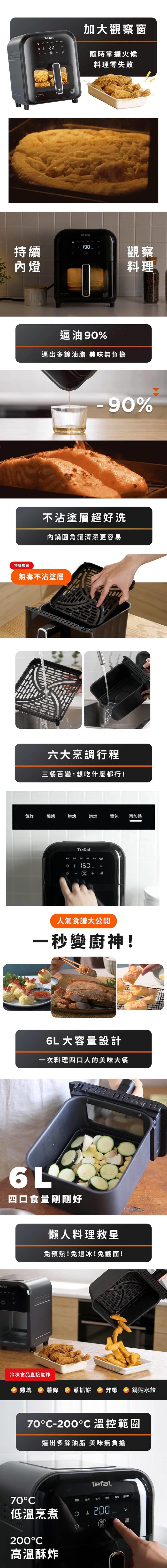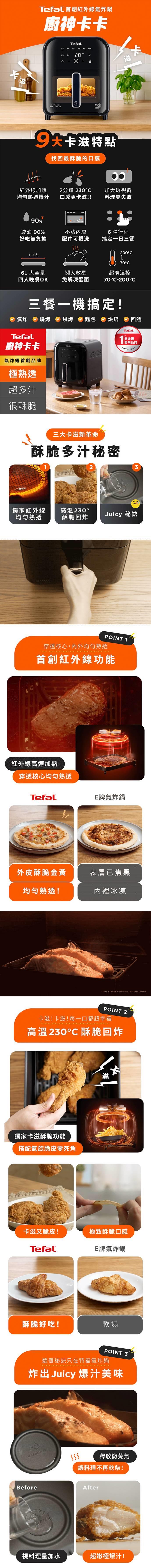遠紅外線加熱技術,食材受熱均勻 卡茲酥脆功能達到外酥內嫩口感 超大視窗享受烹飪過程 全新3D氣旋底盤設計 6種預設行程