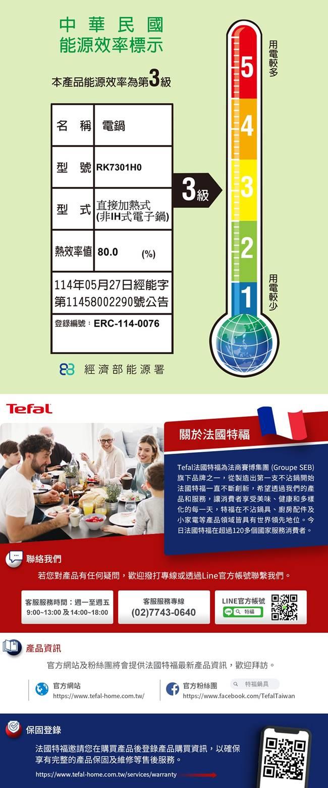 【法國 特福 Tefal】熱旋球釜6人份微電腦電子鍋 (RK7301H0)