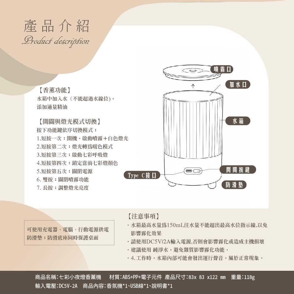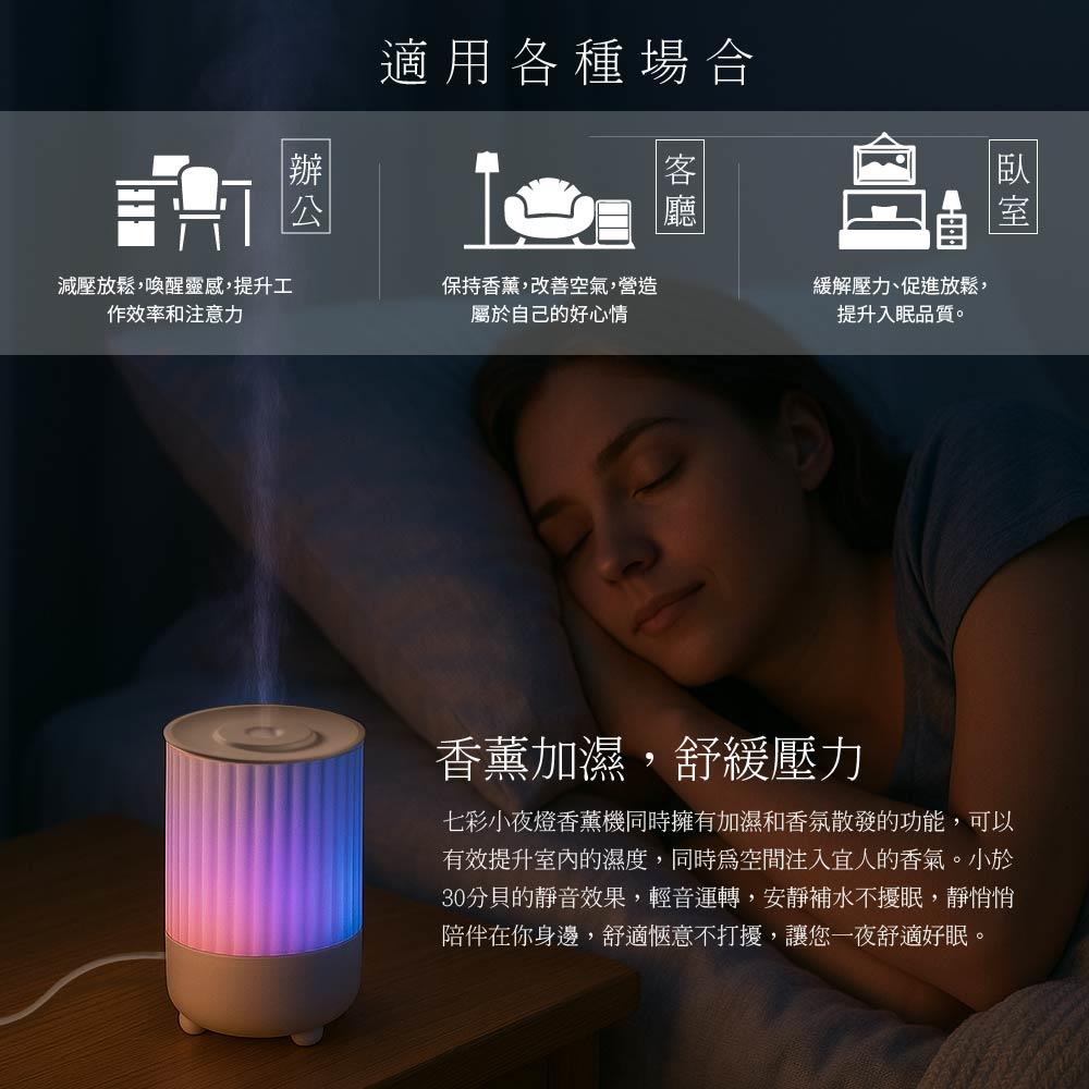 七彩小夜燈香薰機 奈米霧化加濕器 靜音加濕 不凝水珠香氛機