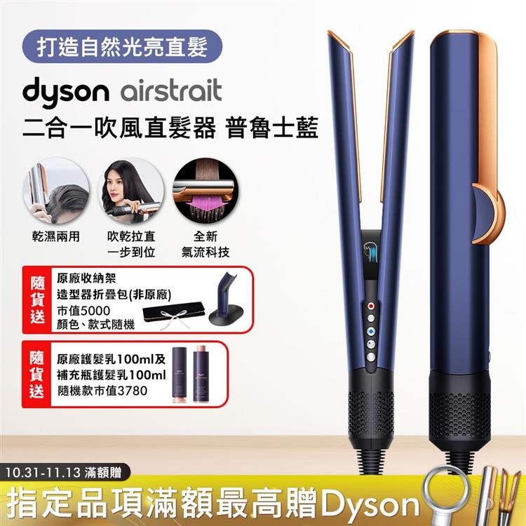 Dyson戴森 Airstrait二合一吹風直髮器 HT01 普魯士藍【送原廠架+收納包+髮乳+補充瓶】